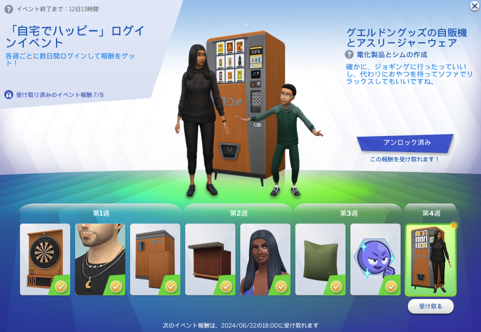 SIMS4のゲーム内で2024年5月30日から1ヶ月の期間限定で突然始まった謎のログインボーナス、筆者は無事全て受け取ることができました。